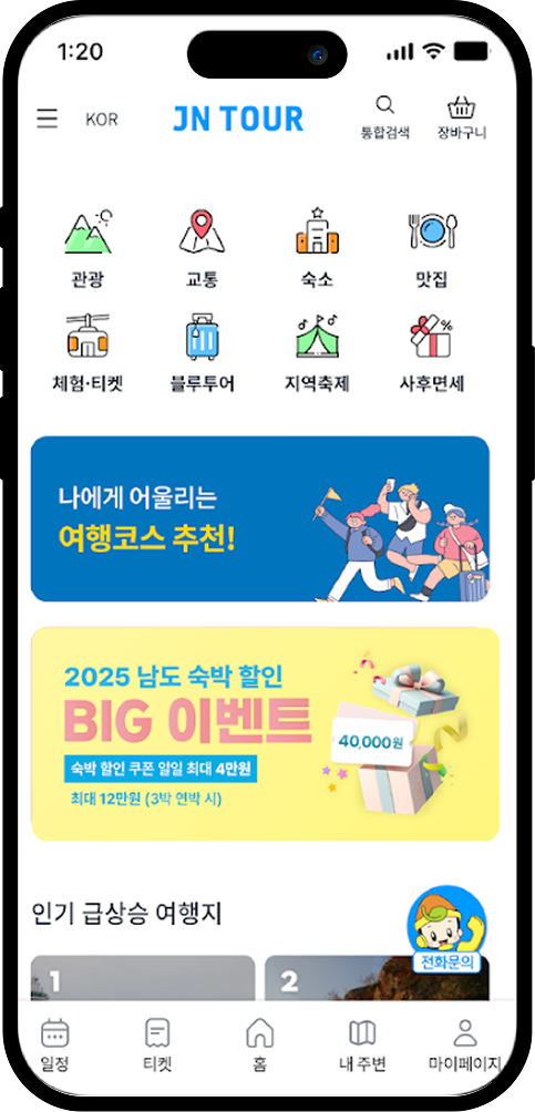 완벽한 나만의 전남 여행을 계획 중이라면 JN TOUR! 당신의 특별한 전남 여행, 전남관광플랫폼 JN TOUR 하나로 빠르고 간편하게 !